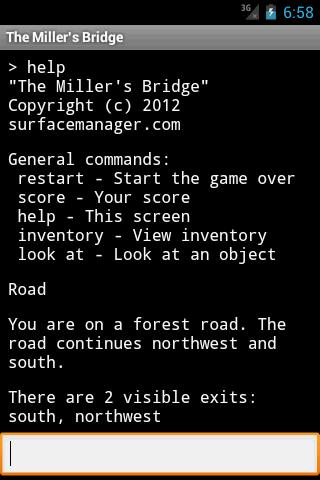 The Miller's Bridge -Colossal Cave와 Zork 스타일의 텍스트 모험 (및 기타 Infocom 및 Level 9 Games).